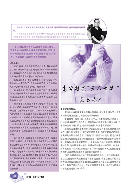 媒体:《伴侣》杂志2017年10月总第461期P38《婚恋诊室》